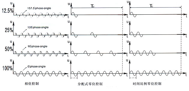 綜觀國(guó)內(nèi)外可控硅電力控制器產(chǎn)品,控制模式無(wú)非就是兩種:相位控制和零位控制(分配式零位控制、時(shí)間比例零控制)。三者之間的比較請(qǐng)看以下圖表。
